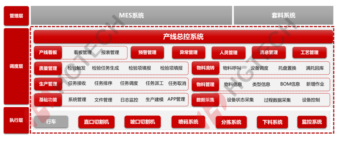 HG-CCS中控系統(tǒng)實時監(jiān)控生產設備、物流設備及倉儲設備的運行狀況,對生產資源進行合理調度,確保產線高效運轉,實現產線的無人化生產;自動匯總統(tǒng)計車間所需數據,量化管理,為上層MES系統(tǒng)提供數據支撐。