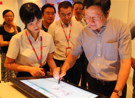 一行先來到華工激光展廳,了解了激光的起源、發(fā)展、工藝、技術(shù)、應(yīng)用領(lǐng)域,又到華工圖像展廳了解了圖像全息二維碼防偽等技術(shù),最后到華工科技本部展廳對整個(gè)集團(tuán)的業(yè)務(wù)有了一個(gè)全面的了解。
