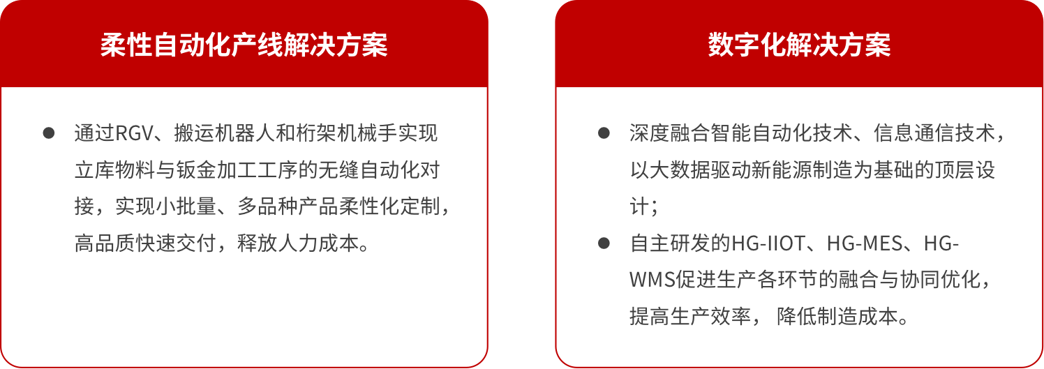 業(yè)內(nèi)領(lǐng)先的“智能制造整體解決方案服務(wù)商”,專注研柔性鈑金加工自動化產(chǎn)線、智能倉儲物流自動化設(shè)計與交付,結(jié)合自主研發(fā)的HG-IIOT,HG-MES,HG-WMS等數(shù)字化產(chǎn)品,為高低壓電器柜、地鐵閘機、電梯、自動化售賣機行業(yè)等客戶打造標桿智能工廠。