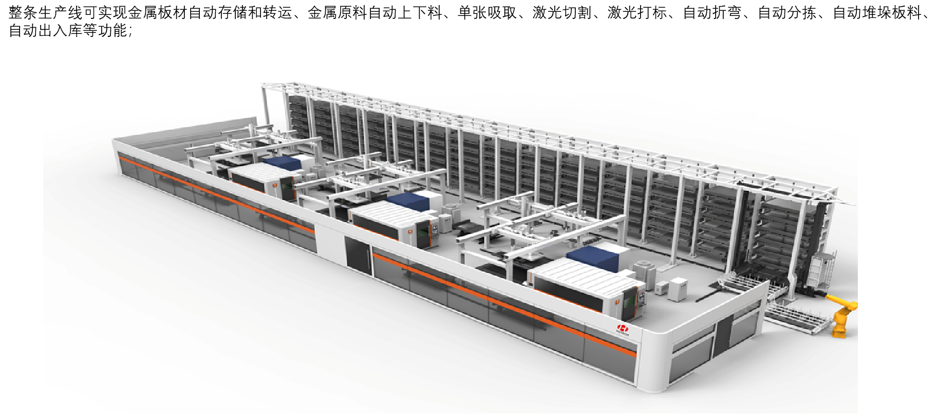 通過RGV、搬運機器人和桁架機械手實現(xiàn)立庫物料與鈑金加工工序的無縫自動化對接,實現(xiàn)小批量、多品種產(chǎn)品柔性化定制,高品質(zhì)快速交付,釋放人力成本。